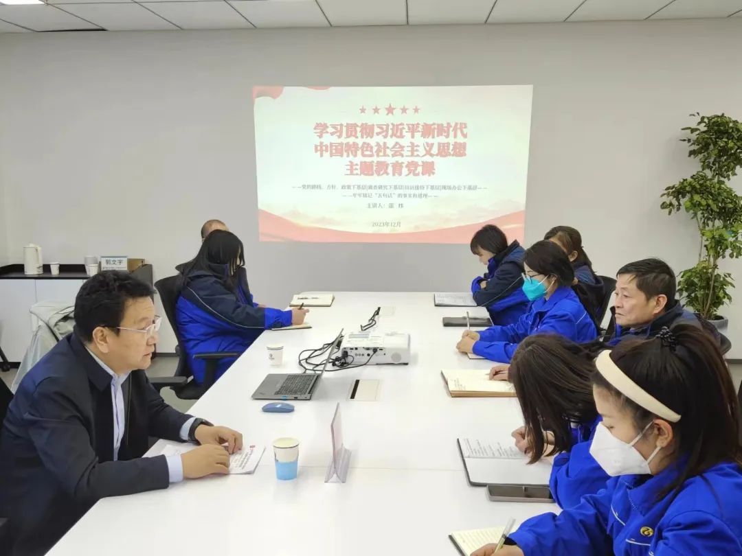 为推进学习贯彻习近平新时代中国特色社会主义思想主题教育,深入学习理解“五句话”的事实和道理,12月22日,乌海市发展和改革委员会党组书记、主任邵炜一行到365英国上市官方网站,开展了《坚持学习推广“四下基层”牢牢铭记“五句话”的事实和道理+推动主题教育善作善战》党课教育,365英国上市官方网站党委宣传委员、党群部总经理郭文宇,以及来自各基层支部的党务工作者和党员代表参加了学习。